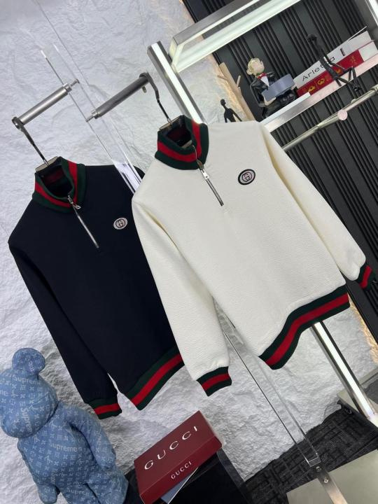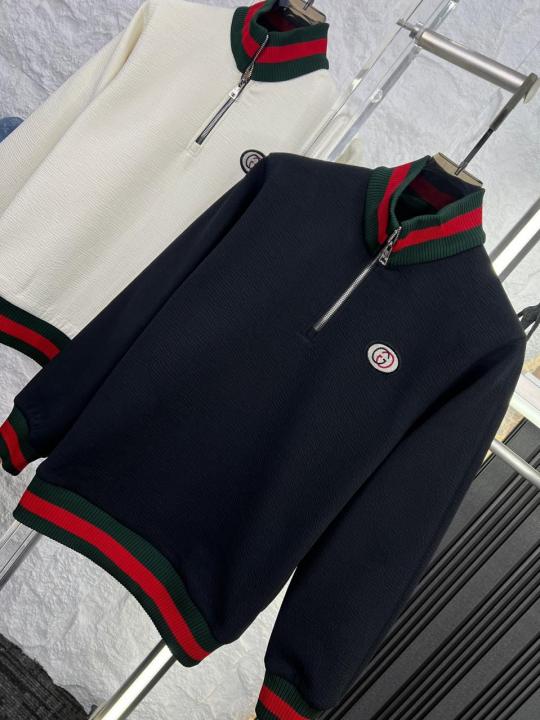 Gucc i Imported Crush Knit bonded Fabric High Neck with Brushing Imp logo Zipper Sweatshirt 3588