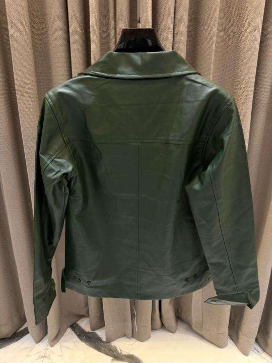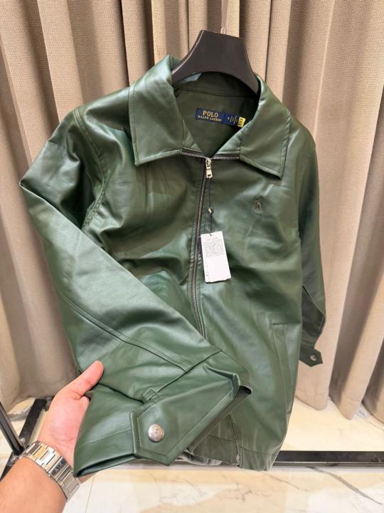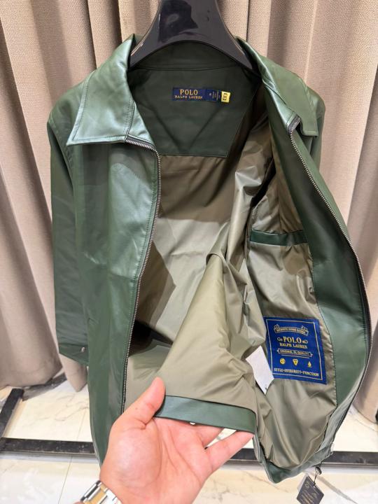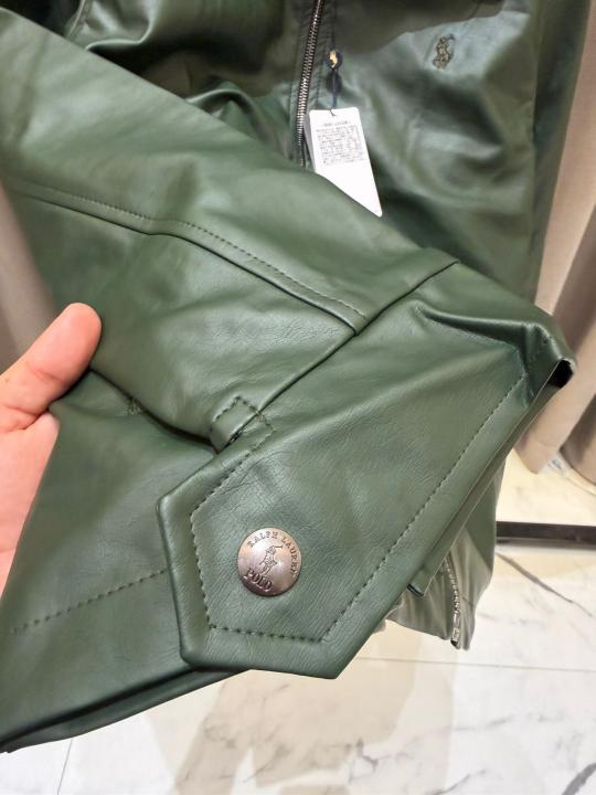 Ralph_Lauren Chest Logo Leather Jacket Army Green