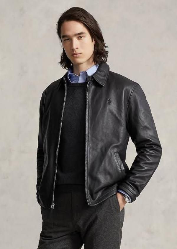 Ralph_Lauren Chest Logo Leather Jacket Black