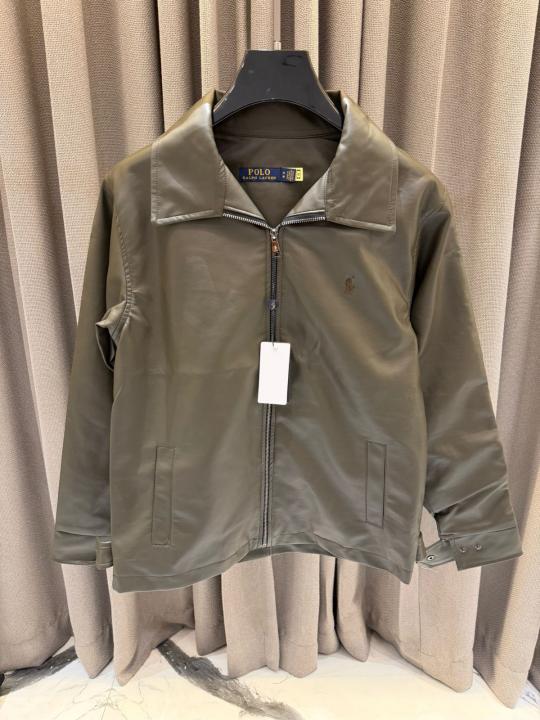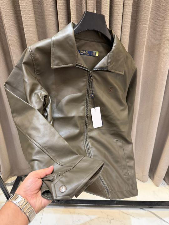 Ralph_Lauren Chest Logo Leather Jacket Army Green